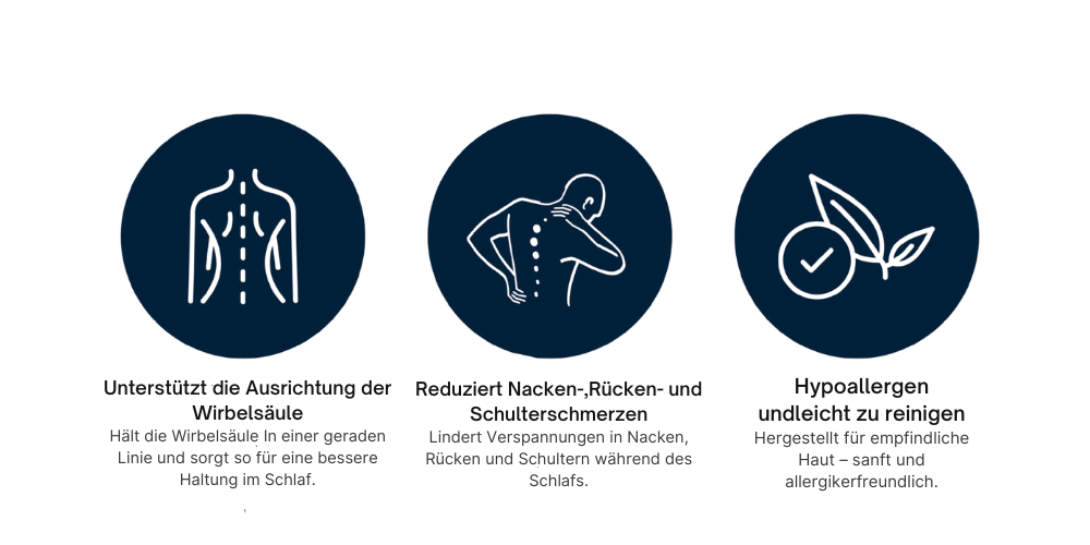 Sie wurde speziell entwickelt, um Ihre Nacken- und Schultermuskulatur zu entlasten, die Atmung zu fördern und die natürliche Ausrichtung Ihres Körpers während des Schlafs zu unterstützen.